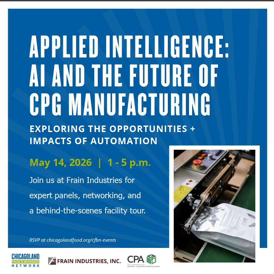 Join us for an afternoon symposium at Frain Industries’ manufacturing facility. Explore topics such as how AI will reshape the manufacturing industry, with panel discussions about automation with CPGs, co-manufacturers, cybersecurity experts, and more. Networking sessions and a tour of Frain’s OEM showroom to follow!